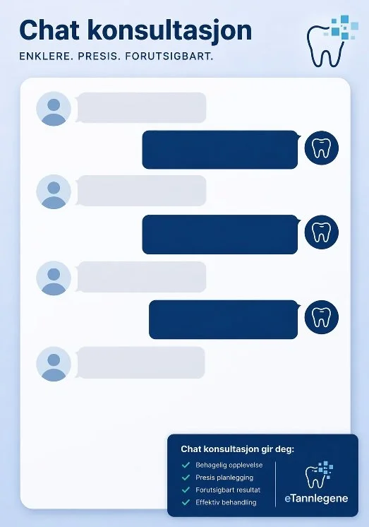 Videokonsultasjon og chatkonsultasjon med erfaren tannlege. Få råd, vurdering og veiledning raskt og trygt - helt digitalt.